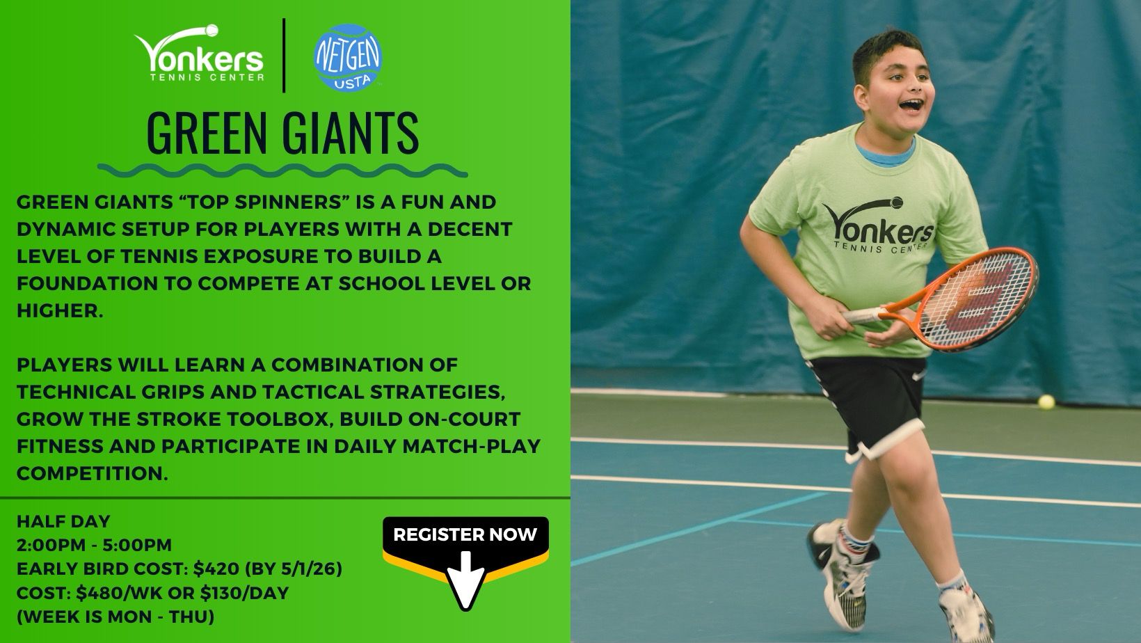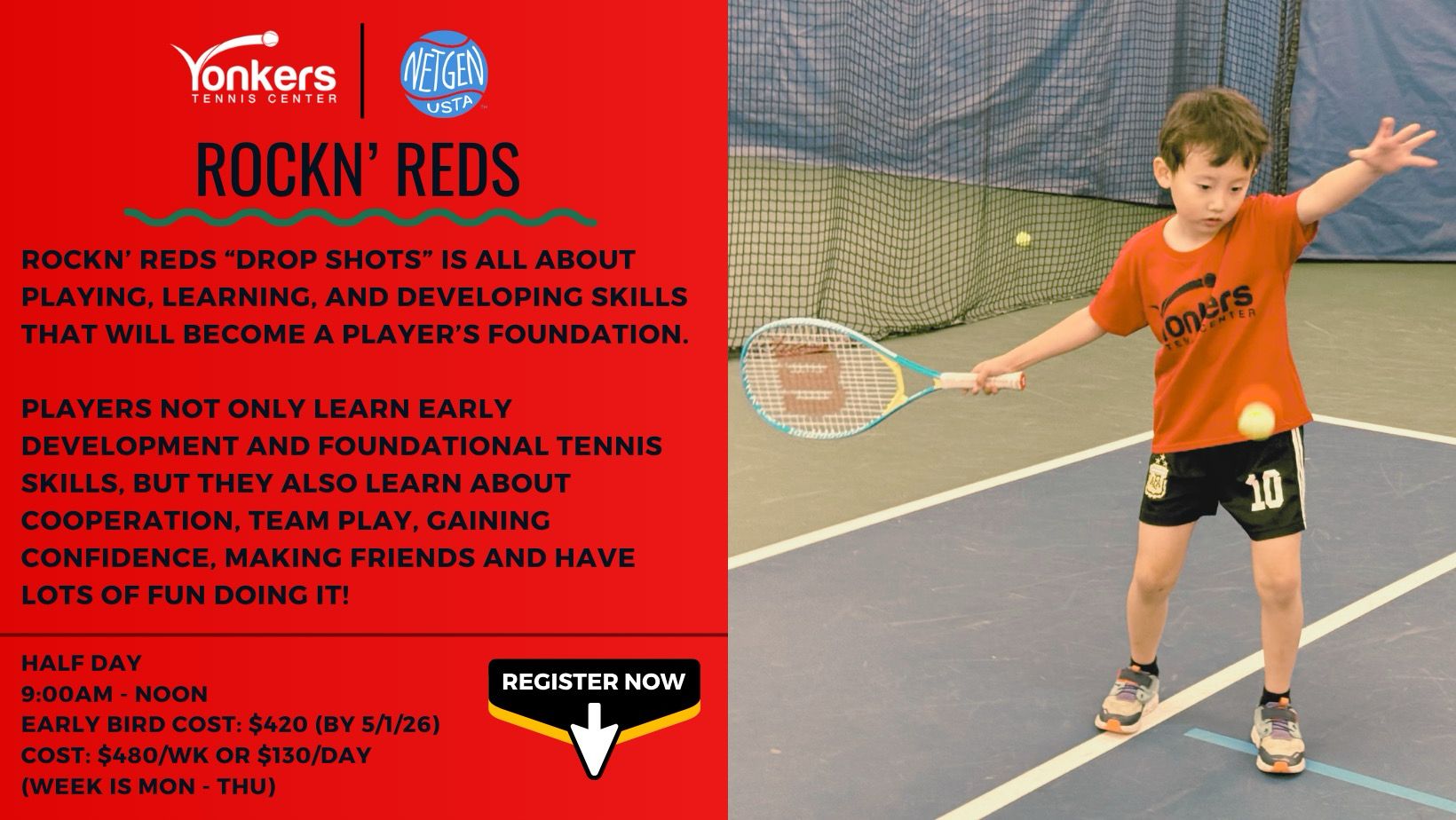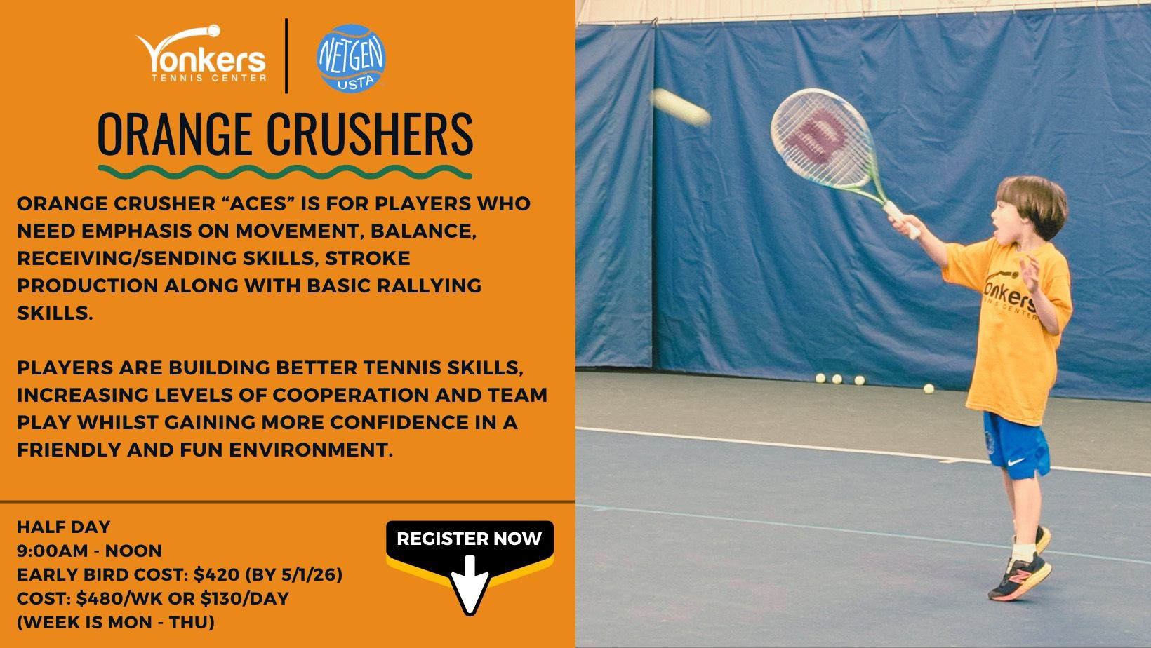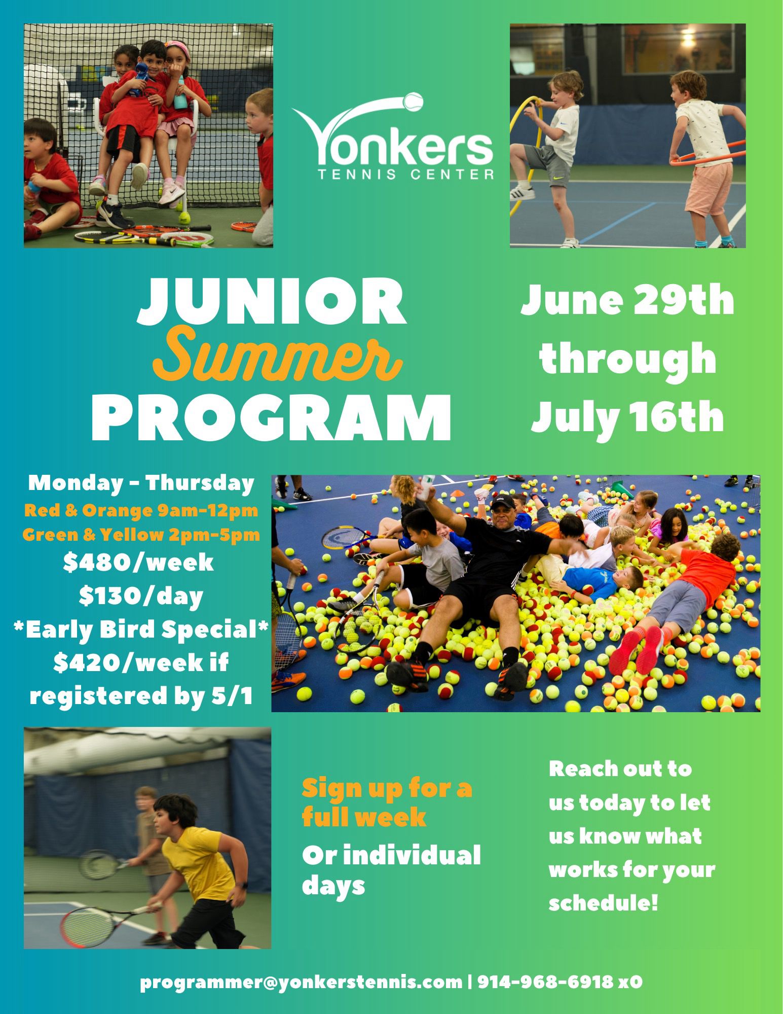 The Junior Summer Program is hosted at Yonkers Tennis Center, a year-round climate cooled indoor facility. Summer is gonna be a scorcher! .